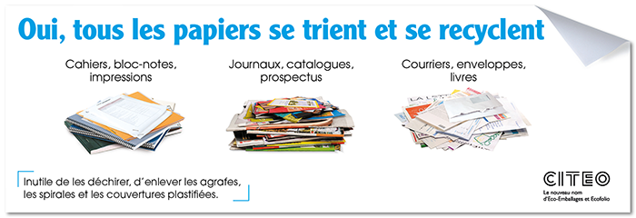 Chaque année, 22 milliards de litres d’eau sont économisés grâce au recyclage des papiers ménagers, soit l’équivalent de 7600 piscines olympiques.